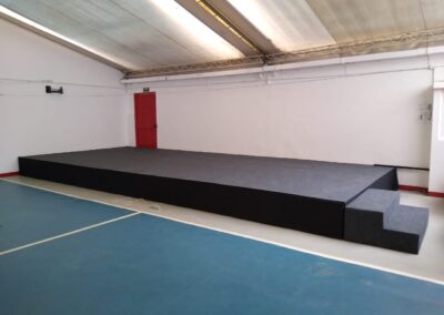Nossos palcos são construídos com materiais de alta qualidade e seguem os mais rigorosos padrões de segurança, proporcionando um ambiente confiável e profissional para os artistas e apresentadores.