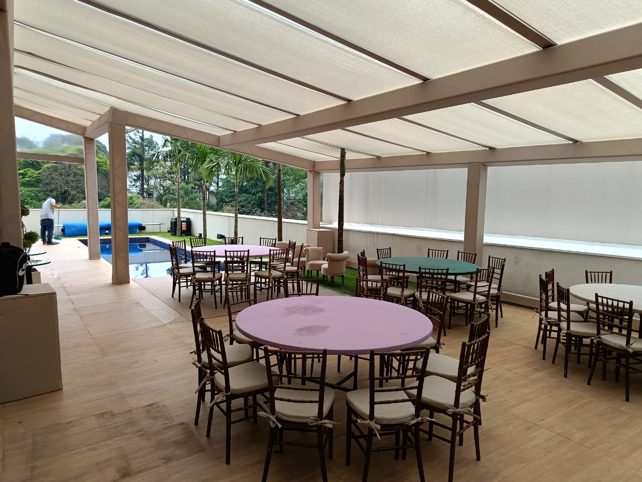 Transforme sua área de piscina em um espaço versátil e elegante para eventos especiais. Nossos tablados são projetados para proporcionar uma superfície estável e segura sobre a água, permitindo a realização de cerimônias, festas e outros eventos sobre a piscina com total conforto e segurança.