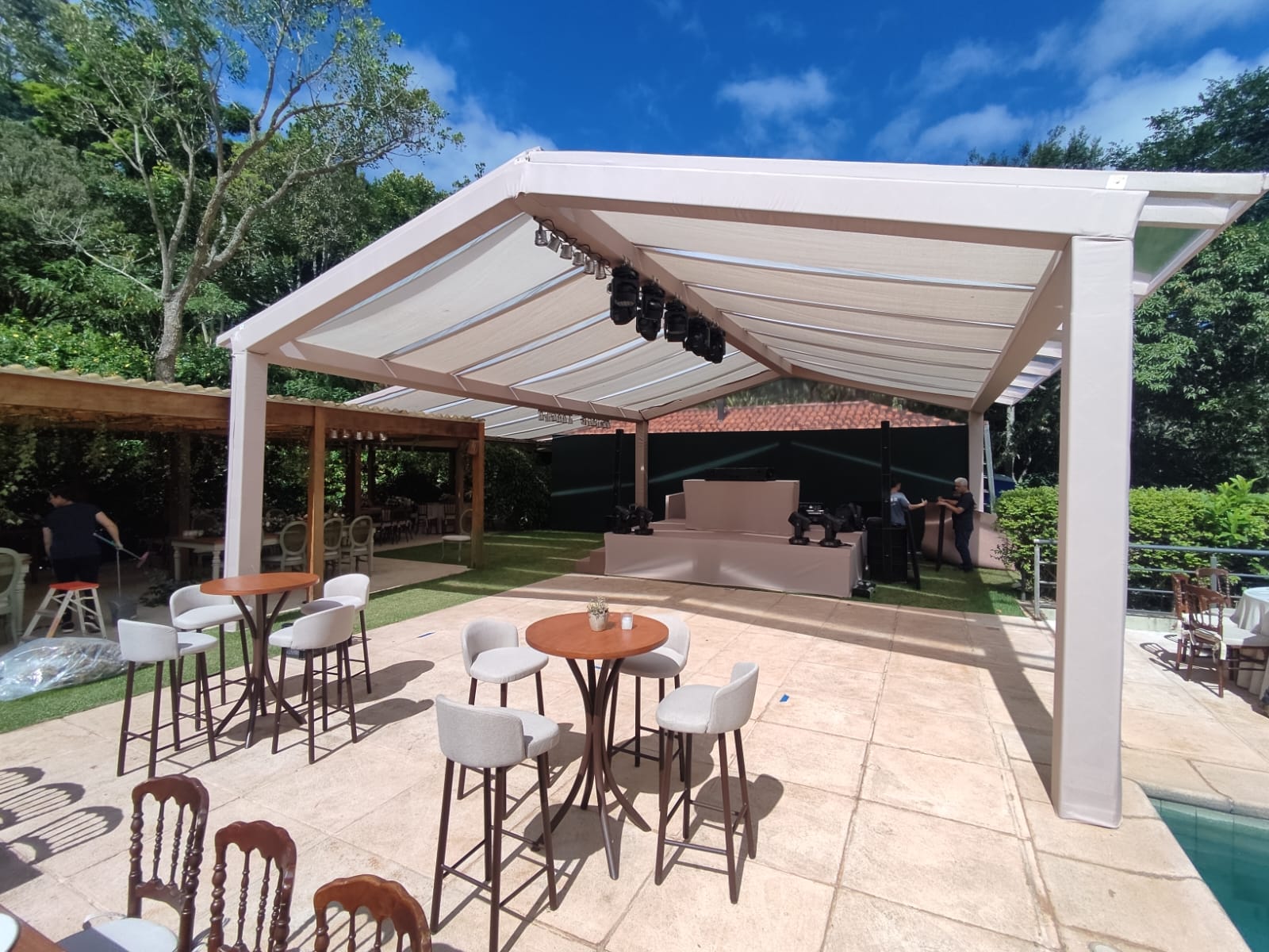 A versatilidade e adaptabilidade das nossas coberturas e toldos permitem que sejam facilmente integrados a diferentes tipos de eventos, sejam eles casamentos elegantes ao ar livre, festas corporativas ou eventos sociais em larga escala.